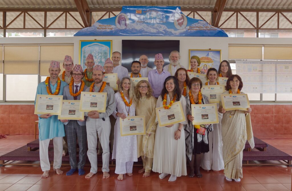 Nye kandidater fra Maharishi Vastu Arkitekt Træningskursus i Nepal med lærerne. Brahmananda saraswati Nagar campus, Kathmandu. 07.10.2023. See Full Bio